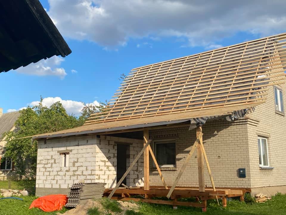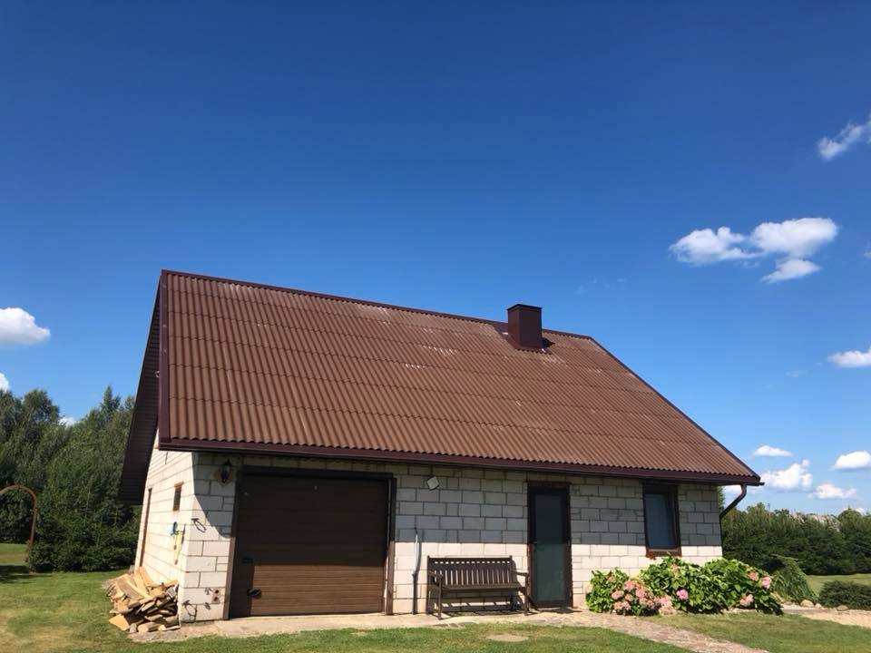 Stogo skardinimo darbai, pakalimų apdaila (medinė,plastikinė,skardinė)